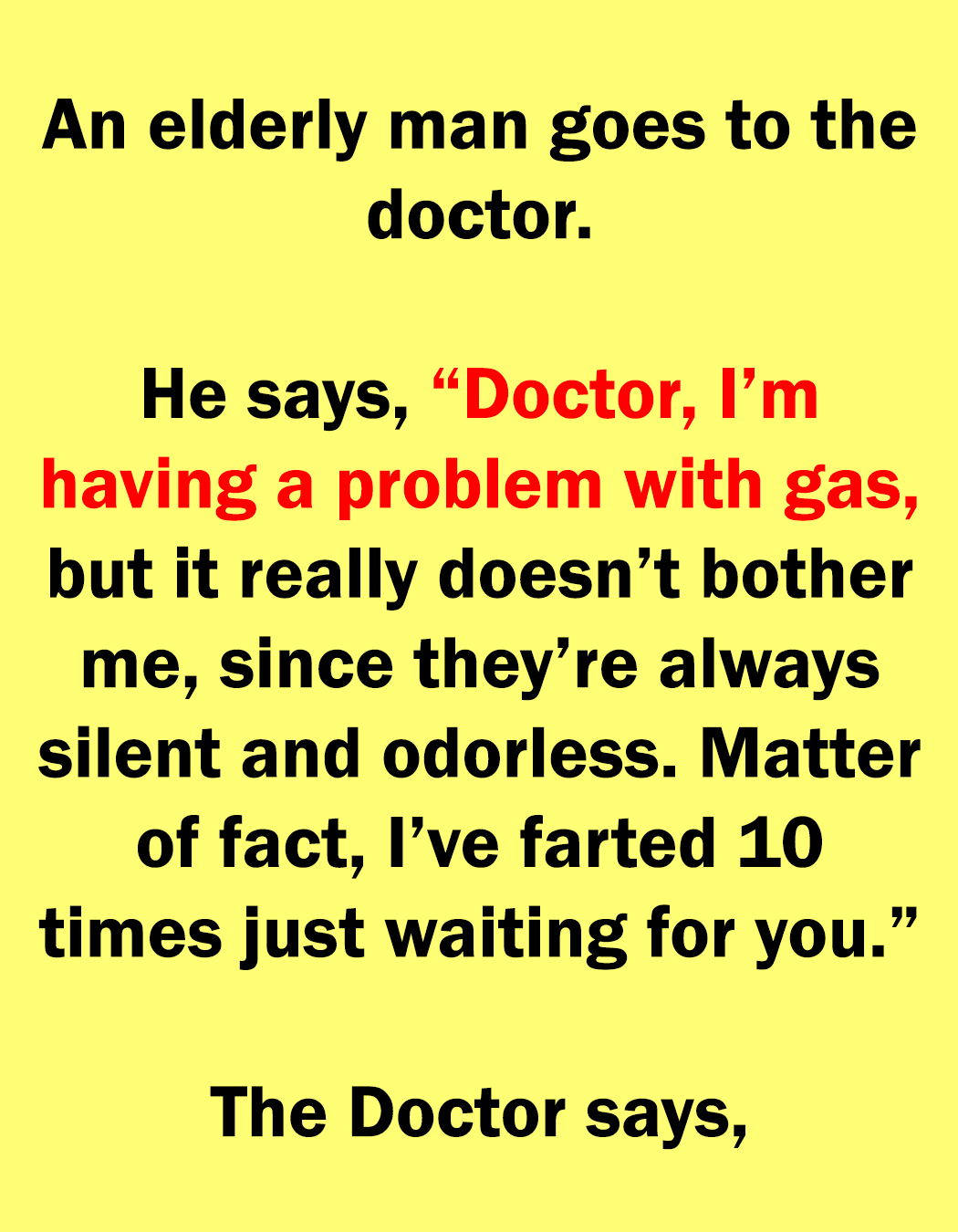 โDoctor, Iโm having a problem with gas, but it really doesnโt bother me, since theyโre always silent and odorless. Matter of fact, Iโve farted 10 times just waiting for you.โ
