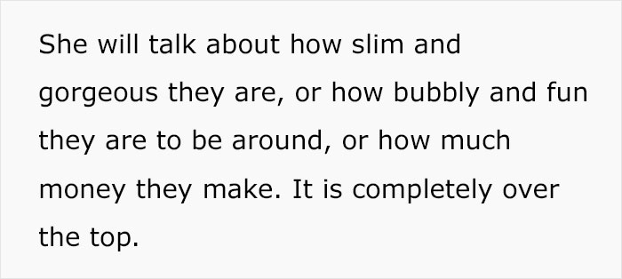Her mom is always comparing her to other women’s daughters, who she claims are perfect in every way. These continuous comments chipped away at the woman’s self-esteem, leading her to question her mother’s intentions.