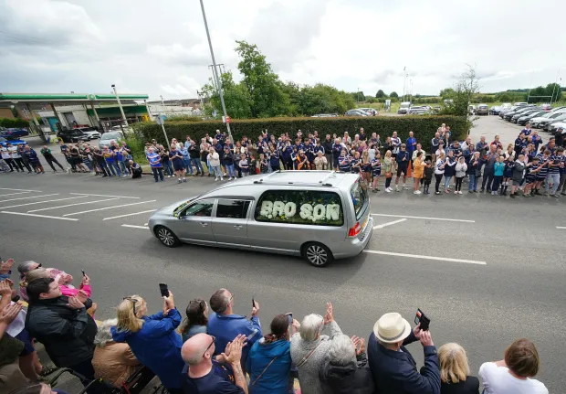 Many in the crowd wore Leeds Rhino shirts, turning the roads blue in tribute. Junior players from Featherstone Lions ARLFC also appeared in their team uniforms.