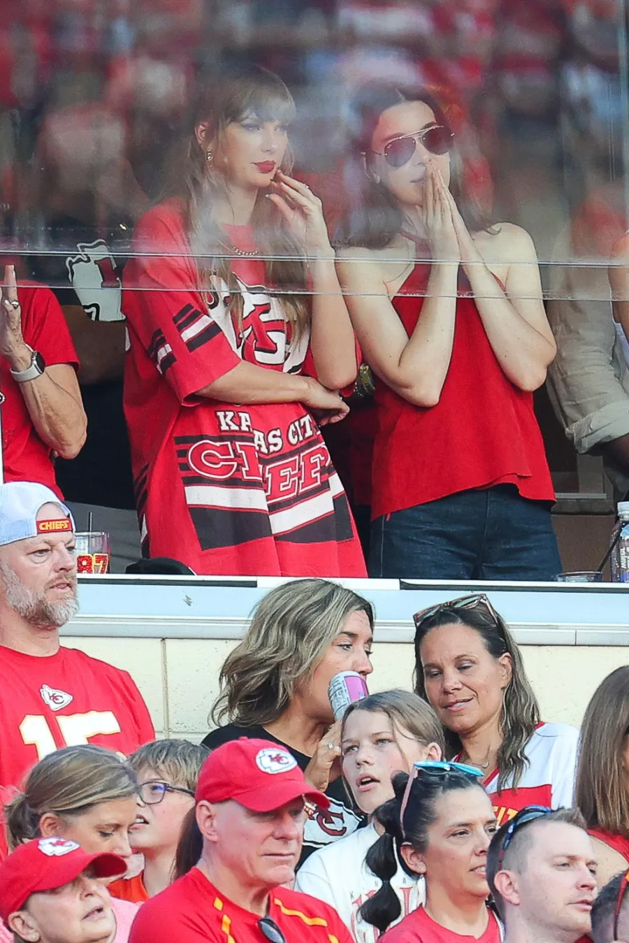 From high atop her suite at Kansas Cityโs Arrowhead Stadium, Swift was shown on CBS hugging her fellow Chiefs fans as boyfriend Travis Kelce and his squad improved to 2-0.