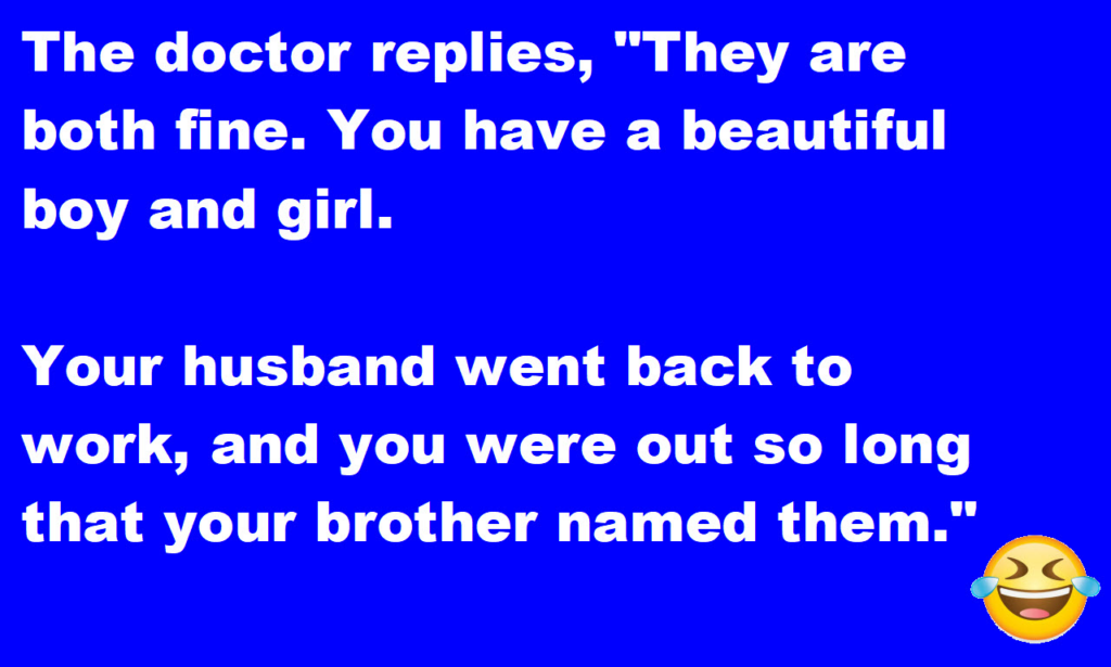 The doctor replies, “They are both fine. You have a beautiful boy and girl.