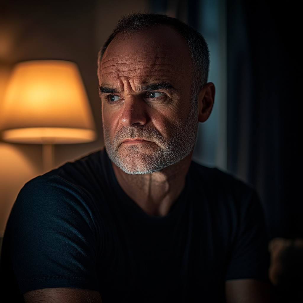 A man looks embarrassed while sitting in his room | Source: Midjourney