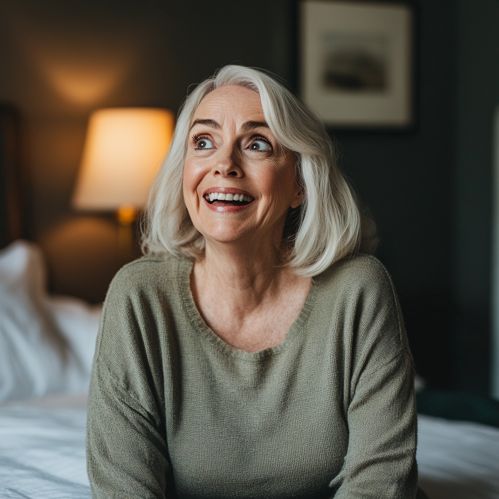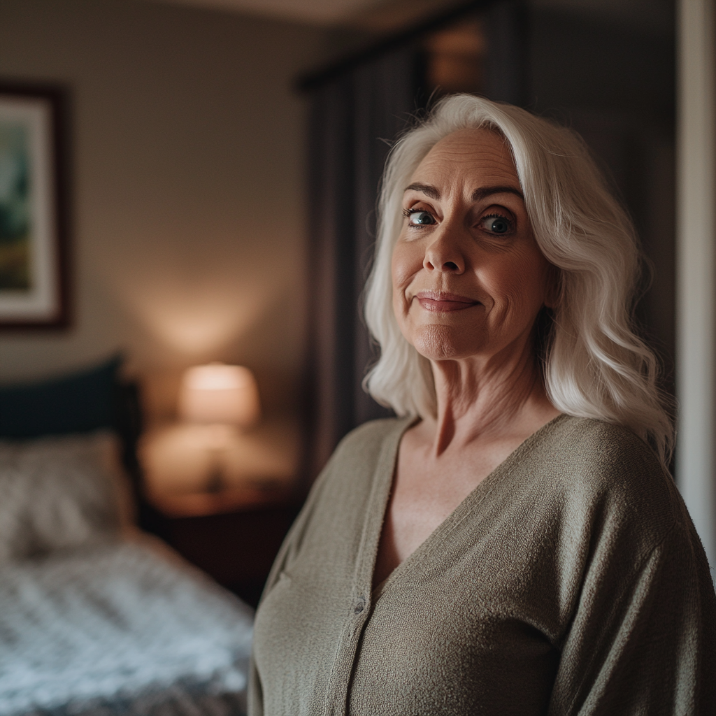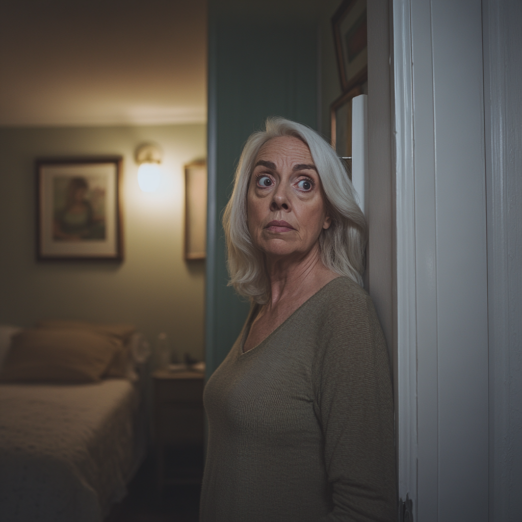 A stunned woman standing in her room | Source: Midjourney
