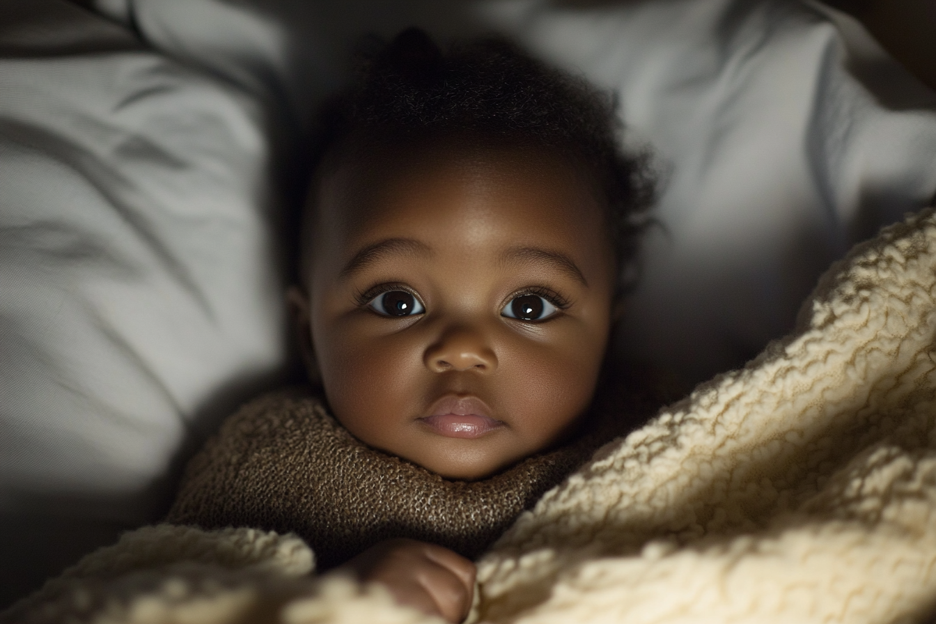 A sleeping baby nestled in soft sheets | Source: Midjourney