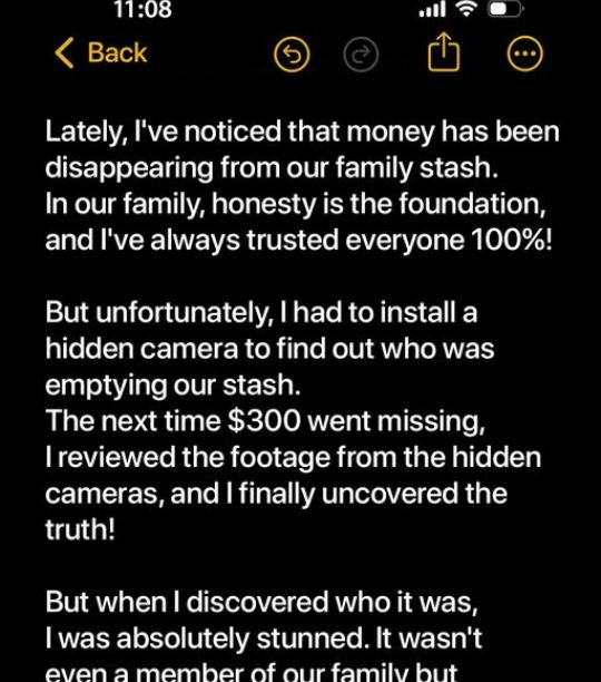 Lately, I’ve noticed that money has been disappearing from our family stash. In our family, honesty is the foundation, and I’ve always trusted everyone 100%! But unfortunately, I had to install a hidden camera to find out who was emptying our stash.