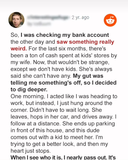 For years, I believed my marriage to be rock-solid until a routine glance at my wifeโs payment statement turned my world upside down. The document was peppered with incoherent expenses on baby items, visits to pediatricians, and kindergarten fees. My wife, Natalie, and I didn’t have children, and these finds left me perplexed and worried.