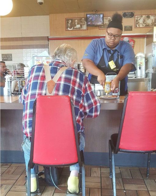 “My daughter was a waitress. I lost her last year. You remind me of her. Take care of yourself.”