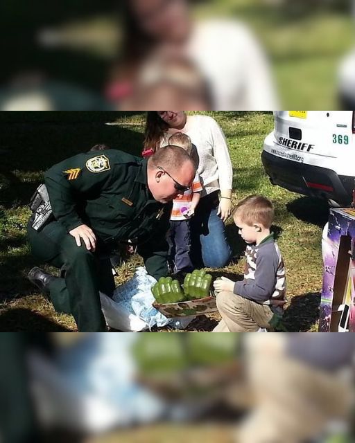 Four years old. Brown cowlick, Velcro shoes, tiny voice. He tugged on the deputyโs pant leg, holding a box with green plastic toy grenadesโsomething cheap from a donation bin, but his little hands gripped it like treasure.