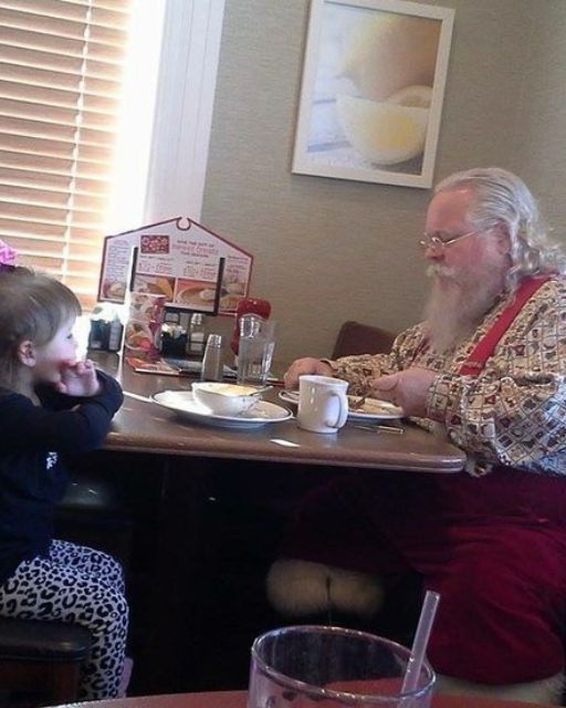 A man with a long white beard, dressed in red suspenders, sat at a table nearby. He wasn’t in a sleigh, and there were no reindeer, but to her? There was no doubt.