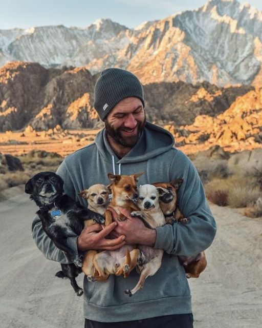 We drove back to my campsite together, and when Ray stepped out of the truck, the five chihuahuas immediately bolted toward him, barking and yipping like they’d found their long-lost pack leader. Watching them leap into his arms made my chest tighten. These little creatures had been searching for connection, for home, and now they finally had it again.