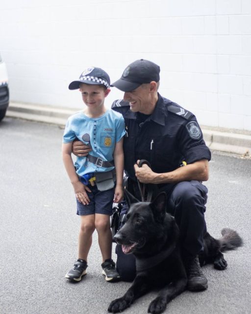 So we waited in line. Jonah finally got his moment, beaming next to the dog like he’d just joined the force for real. The officer crouched beside him, grinning, arm lightly around Jonah’s back.