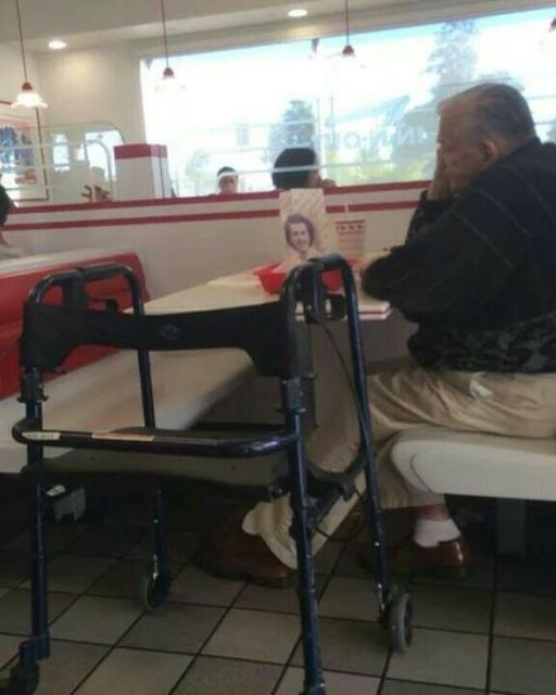 I mean, I watched him sit in silence today for over an hour. Talking to a picture while the world moved on around him. Customers came and went. A kid dropped his burger. Life kept happeningโand he was stuck.