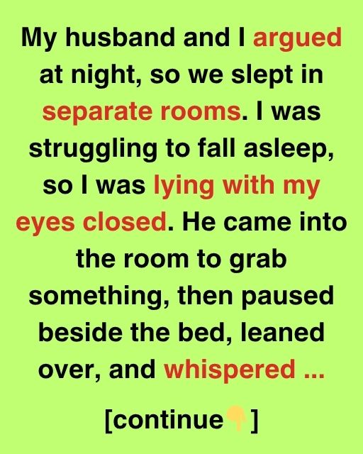 My husband and I argued at night, so we slept in separate rooms. I was struggling to fall asleep, so I was lying with my eyes closed. He came into the room to grab something, then paused beside the bed, leaned over, and whispered, โI donโt want to fight anymore. I love you.โ