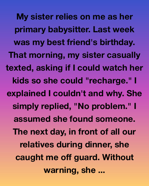 I never told her how much those words cut me. I thought time would heal it all, but years passed, birthdays slipped by uncelebrated, and neither of us reached out. And now, out of nowhere, she’d called me for help? I wondered why she thought I’d be the one to step up after everything. Maybe she was desperate. Maybe she had no one else. Or maybe she actually still trusted me, even after all these years.