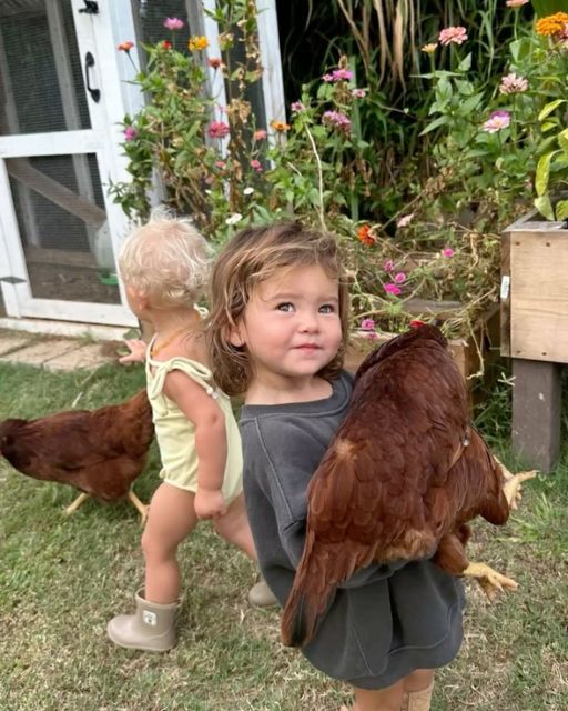 The kids spent the morning chasing chickens while I weeded the garden, finally feeling like we were settling into farm life. My daughter marched up proudly, clutching her favorite hen.