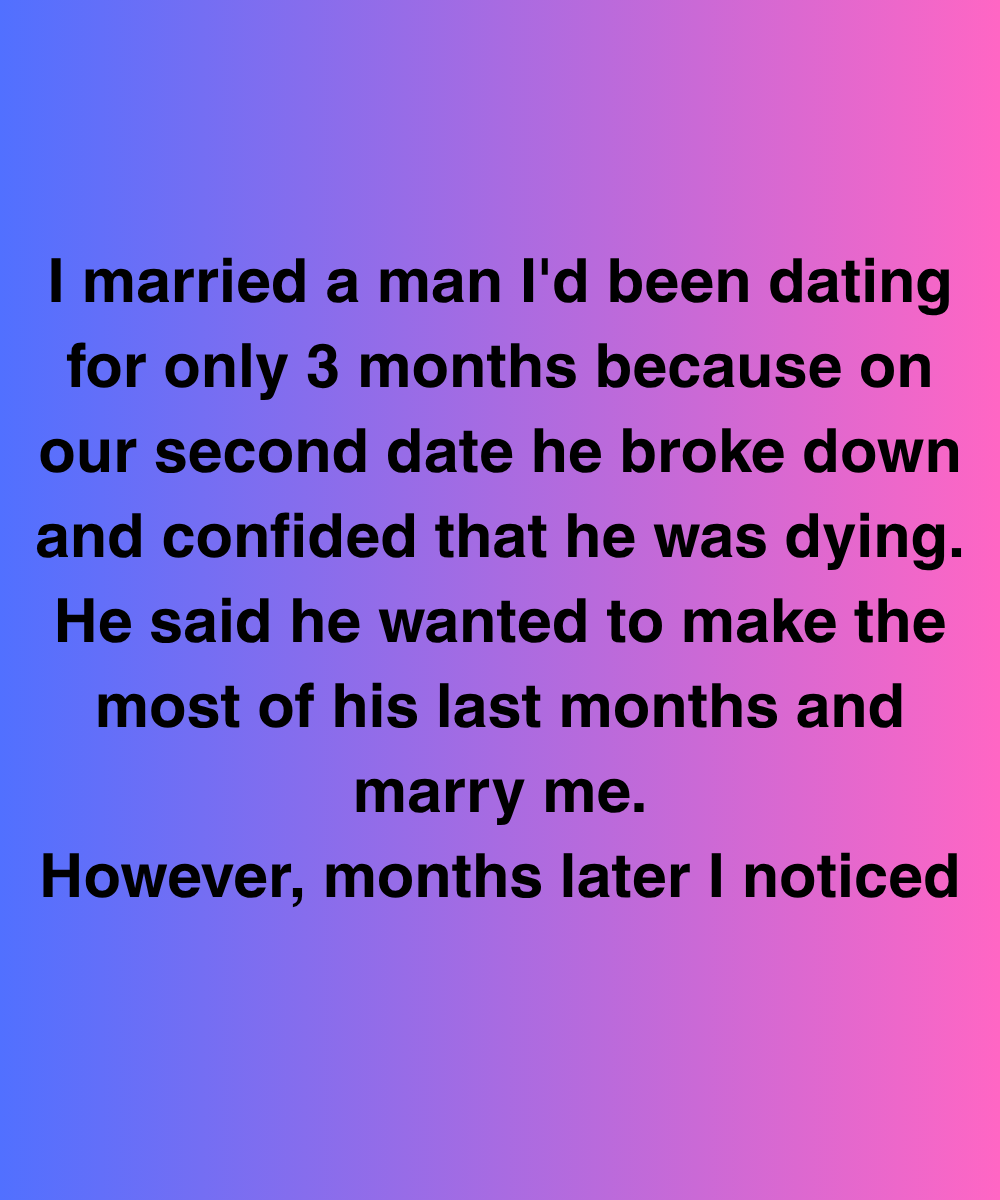 I married a man I’d been dating for only 3 months because on our second date he broke down and confided that he was dying. He said he wanted to make the most of his last months and marry me.