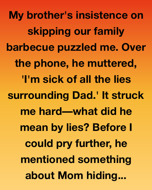 My brother’s insistence on skipping our family barbecue puzzled me. Over the phone, he muttered, ‘I’m sick of all the lies surrounding Dad.’ It struck me hard—what did he mean by lies? Before I could pry further, he mentioned something about Mom hiding things from us all these years, and abruptly ended the call.