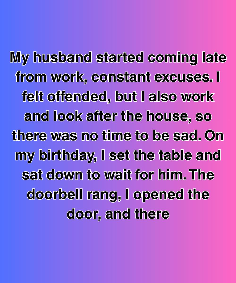 My husband started coming late from work, constant excuses. I felt offended, but I also work and look after the house, so there was no time to be sad. On my birthday, I set the table and sat down to wait for him. The doorbell rang, I opened the door, and there stood a young woman, no older than twenty-two, holding a small paper bag.