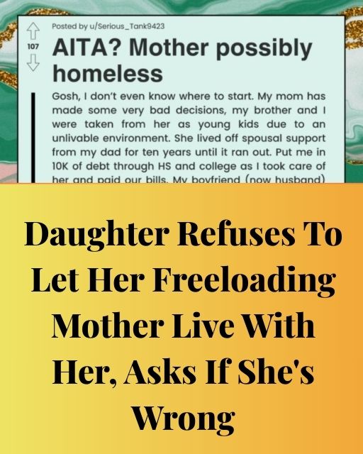 She never got her life together. After the divorce, she lived off spousal support from my dad for a full decade—until that ran out. Then she turned to me.
