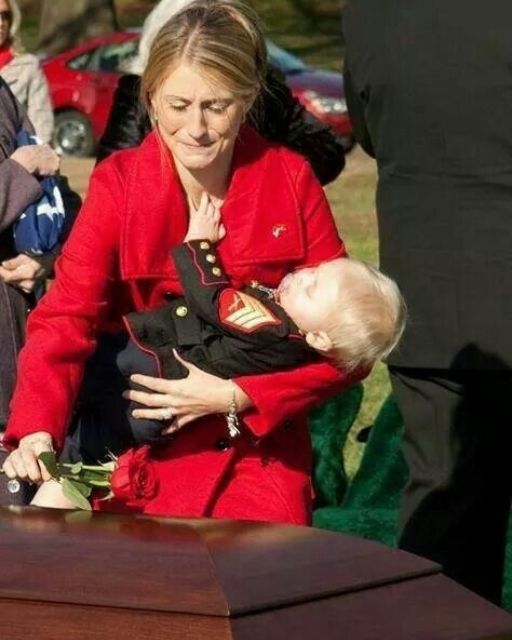 I offered to hold him. She wouldn’t let go. Said he needed to do it himself. Said his father would’ve wanted it that way. So she straightened his tiny Marine dress uniform, adjusted his sleeve, and walked him up to the casket like he was reporting for duty.