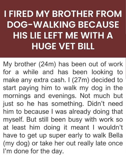 My brotherโs 24 and has been out of work for a while. Iโm 27, working full-time and barely keeping up with life. I didnโt need help walking Bella, my golden retriever, but I figured it was a win-win: he gets a little cash, I get one less thing to juggle.