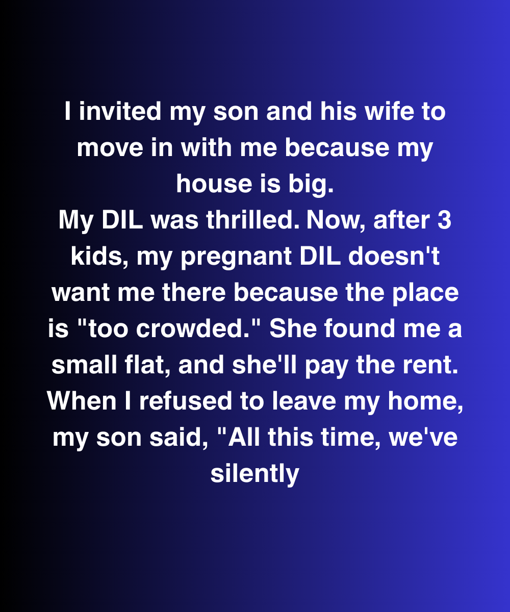 My DIL was thrilled. Now, after 3 kids, my pregnant DIL doesn’t want me there because the place is “too crowded.” She found me a small flat, and she’ll pay the rent. When I refused to leave my home, my son said, “All this time, we’ve silently felt like you’re holding us back.”