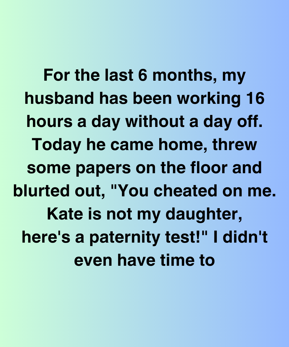 For the last 6 months, my husband has been working 16 hours a day without a day off. Today he came home, threw some papers on the floor and blurted out, “You cheated on me. Kate is not my daughter, here’s a paternity test!” I didn’t even have time to react before he stormed out, slamming the door so hard it shook the walls.
