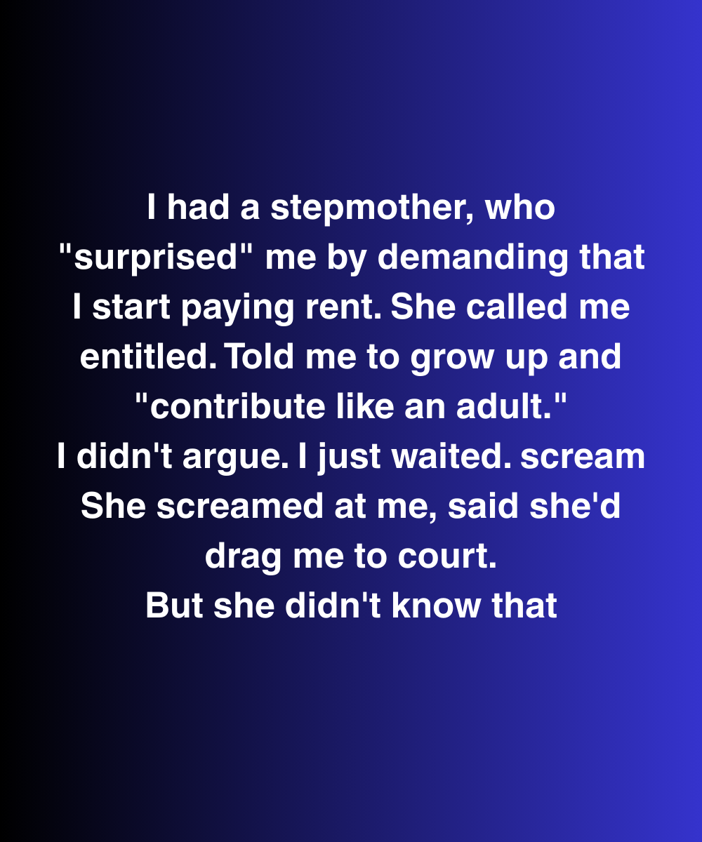 I had a stepmother, who “surprised” me by demanding that I start paying rent. She called me entitled. Told me to grow up and “contribute like an adult.”