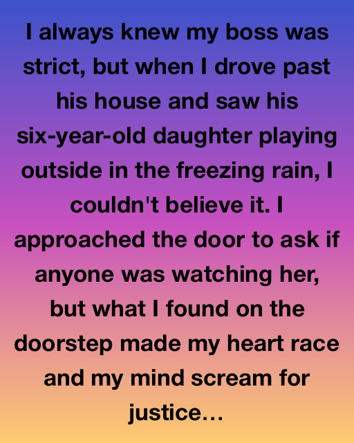 I always knew my boss was strict, but when I drove past his house and saw his six-year-old daughter playing outside in the freezing rain, I couldn’t believe it. I approached the door to ask if anyone was watching her, but what I found on the doorstep made my heart race and my mind scream for justiceโthere was no one there to open the door, and the little girl was alone, shivering and seemingly abandoned.