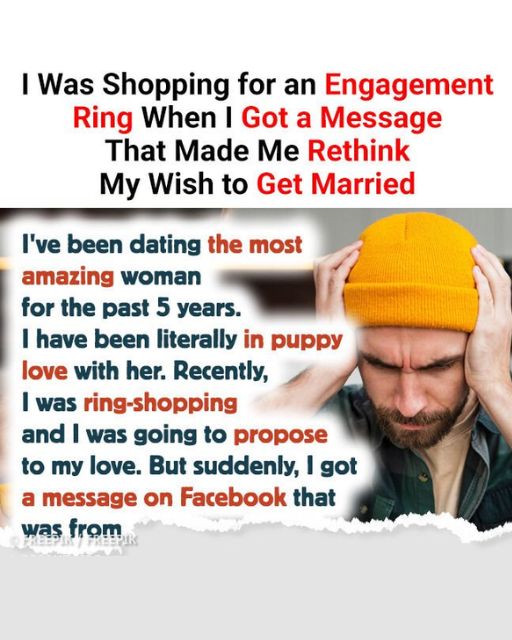 Last week, I was finally doing it. I was in a jewelry store, holding this beautiful vintage ring that was so uniquely her. I had a whole plan worked out in my head, from the restaurant to the speech. My hands were literally shaking with excitement. As I stood there, about to give the jeweler my credit card, my phone buzzed in my pocket. It was a message request on Facebook.