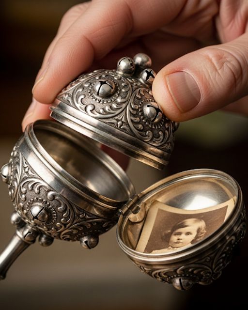 My estranged sister showed up to my baby shower uninvited. She beamed and handed me a beautifully wrapped gift. When I hesitated, she DEMANDED I open it right then. Inside was an antique silver rattle. I thanked her, confused. She snatched it back and twisted the bottom. It popped open, revealing a hidden compartment. Inside was a faded photograph of a young girl that I didn’t recognize at first.