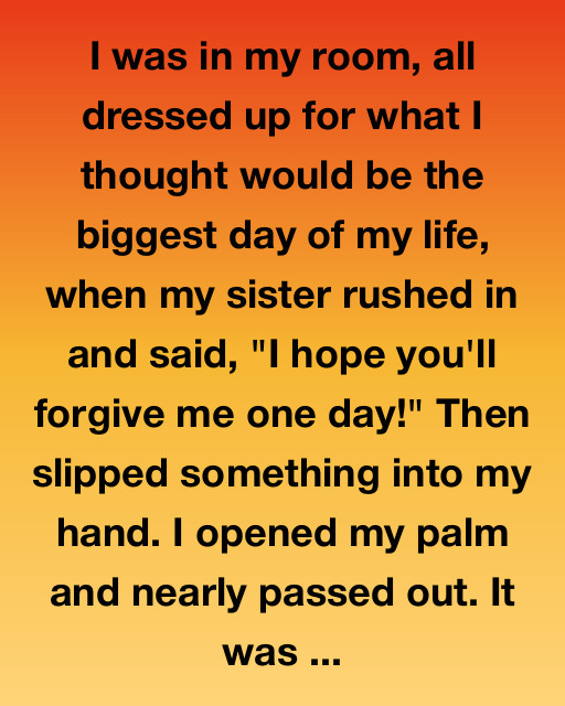 I was in my room, all dressed up for what I thought would be the biggest day of my life, when my sister rushed in and said, “I hope you’ll forgive me one day!”
