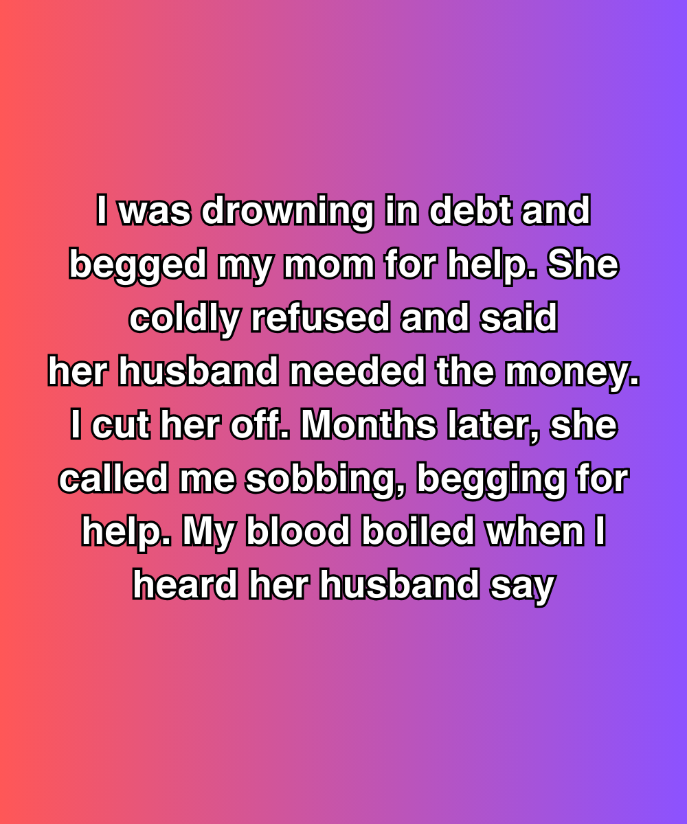 I was drowning in debt and begged my mom for help. She coldly refused and said her husband needed the money.