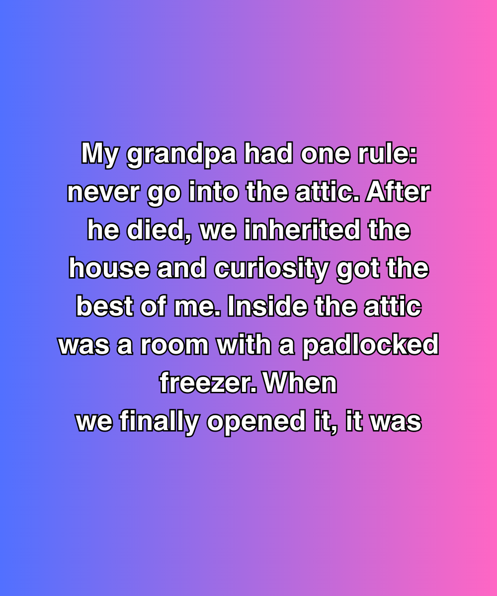 My grandpa had one rule: never go into the attic. After he died, we inherited the house and curiosity got the best of me. Inside the attic was a room with a padlocked freezer. When we finally opened it, it was full of cash. Stacks of bundled bills, some wrapped in aged plastic, others just loose and faded like they’d been sitting there for decades.