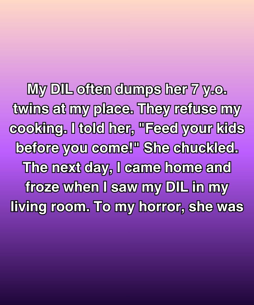 My DIL often dumps her 7 y.o. twins at my place. They refuse my cooking. I told her, “Feed your kids before you come!” She chuckled. The next day, I came home and froze when I saw my DIL in my living room. To my horror, she was holding my wedding album and flipping through it like it was hers.