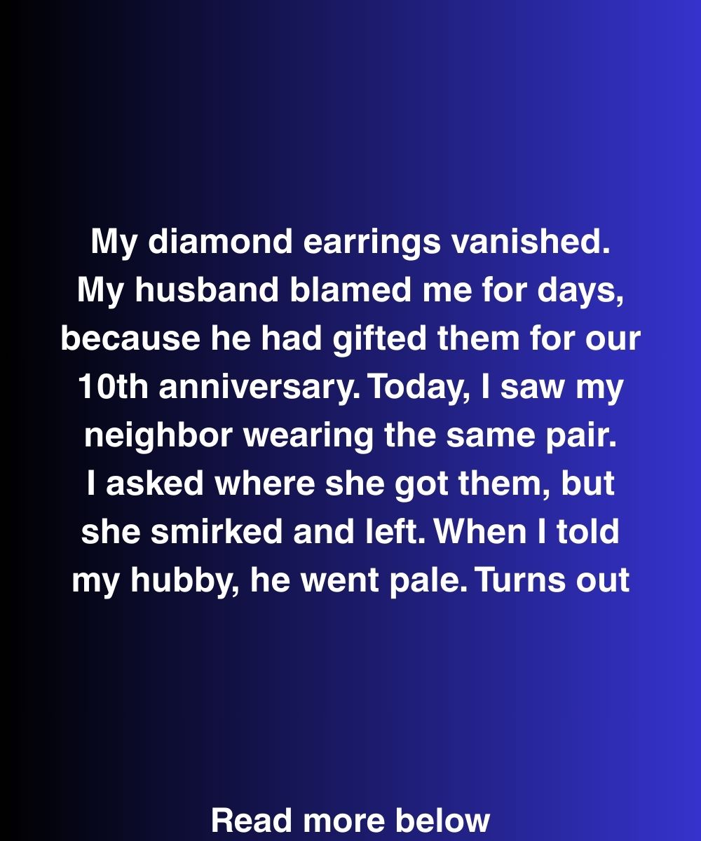 My Diamond Earrings Vanished—Then I Saw My Neighbor Wearing Them And My Husband Turned Pale