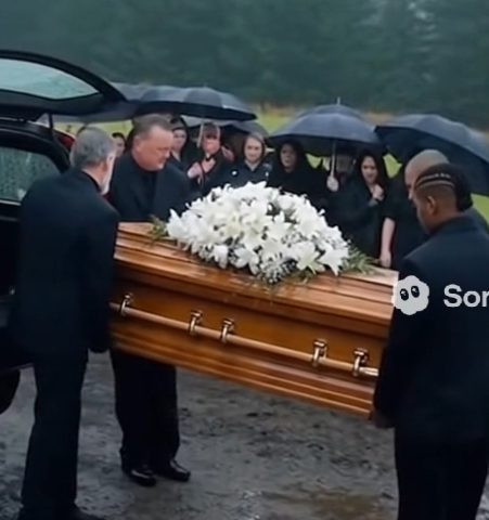 Gasps spread through the crowd. The horse was trembling, his sides streaked with mud, but his eyes — those dark, intelligent eyes — were locked on one thing only: the coffin.