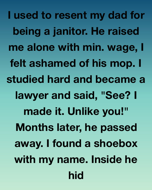 I used to resent my dad for being a janitor. He raised me alone with min. wage, I felt ashamed of his mop. I studied hard and became a lawyer, and said, “See? I made it. Unlike you!” Months later, he passed away. I found a shoebox with my name. Inside he hid the meticulous, fifteen-year blueprint of the very skyscraper I practiced law in, revealing that his minimum-wage mop was the key to my elite corner office.