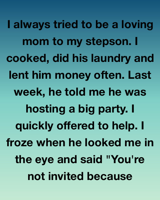 I always tried to be a loving mom to my stepson. I cooked, did his laundry, and lent him money often. Last week, he told me he was hosting a big party. I quickly offered to help. I froze when he looked me in the eye and said, “You’re not invited because this isn’t actually a party; it’s a very high-stakes, private pitch for my new business, and I need you out of the way for the next forty-eight hours.“
