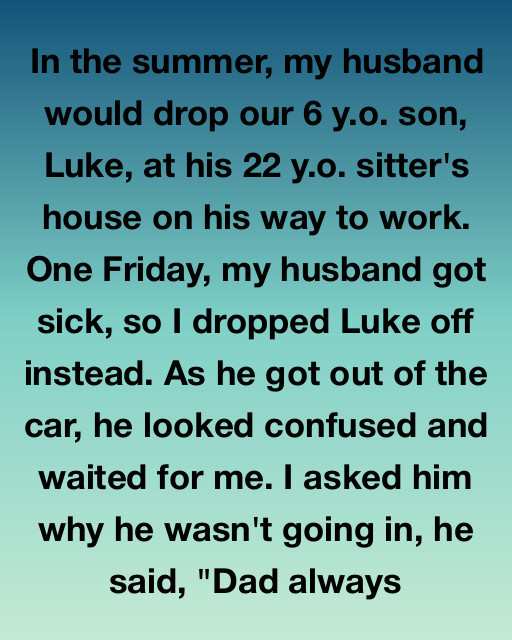 I realized with sickening clarity that David hadn’t been dropping Luke off at his sitter’s house at all. He had been dropping him off at Mrs. Miller’s house to save money, pocketing the considerable difference between what we paid Eliza and what he paid Mrs. Miller. The money he gave Luke was likely the small, daily fee for Mrs. Miller, cleverly disguised as pocket change.