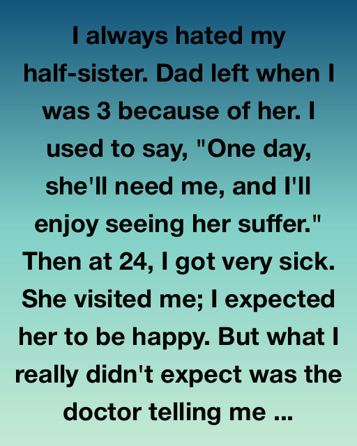 I always hated my half-sister. Dad left when I was 3 because of her. I used to say, “One day, she’ll need me, and I’ll enjoy seeing her suffer.” Then at 24, I got very sick. She visited me; I expected her to be happy. But what I really didn’t expect was the doctor telling me she was the only compatible match for a liver transplant.