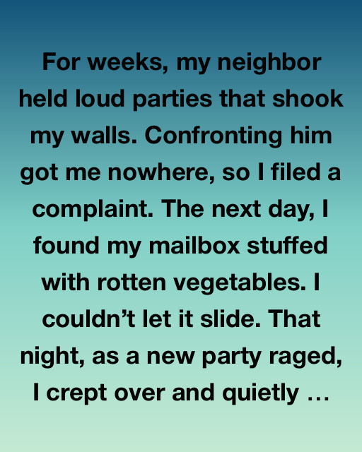 For weeks, my neighbor held loud parties that shook my walls. Confronting him got me nowhere, so I filed a complaint. The next day, I found my mailbox stuffed with rotten vegetables. I couldnโt let it slide. That night, as a new party raged, I crept over and quietly sneaked around the back of his house to peek through the window.