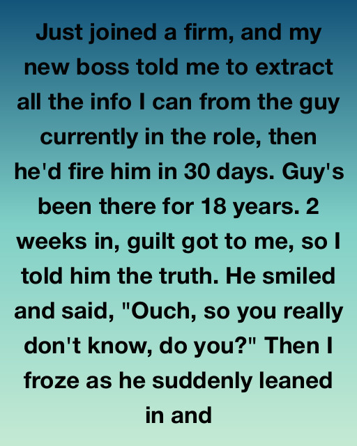 Two weeks in, the guilt got to me. I couldn’t live with the deception anymore. I waited until the office was empty late one Friday afternoon. I walked into Arthur’s quiet, well-organized cubicle, shut the door, and confessed the entire truth to him. I told him every detail of Mr. Sterling’s plan, from the thirty-day deadline to the explicit instruction to extract his proprietary knowledge. I urged him to start looking for another job immediately, giving him a precious head start.