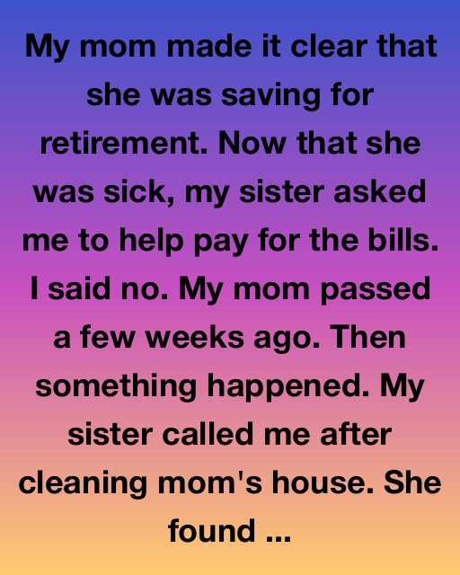 My mom made it clear that she was saving for retirement. Now that she was sick, my sister asked me to help pay for the bills. I said no. My mom passed a few weeks ago. Then something happened. My sister called me after cleaning mom’s house. She found a box in the attic, taped shut and labeled with my name.