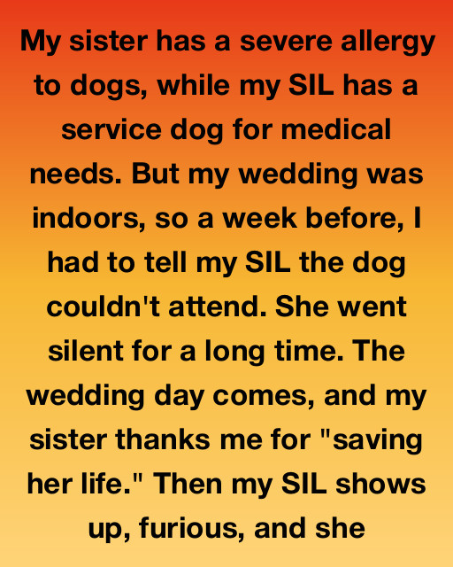 A week before the wedding, I had to tell my SIL the dog couldn’t attend. I called Maya, feeling immense guilt and fear. I gently explained the medical risks to Clara, the venue’s restrictions, and the absolute necessity of keeping the ballroom completely dander-free. I offered to have a remote video link set up for Maya, but I knew it was a hollow substitute for her presence.