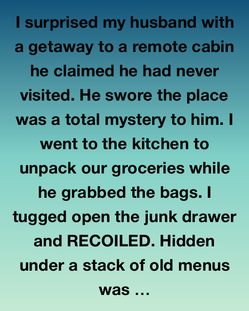 I surprised my husband with a getaway to a remote cabin he claimed he had never visited. He swore the place was a total mystery to him. I went to the kitchen to unpack our groceries while he grabbed the bags. I tugged open the junk drawer and RECOILED. Hidden under a stack of old menus was a Polaroid photograph.