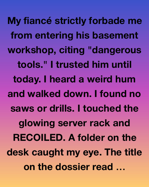 My fiancรฉ strictly forbade me from entering his basement workshop, citing “dangerous tools.” I trusted him until today. I heard a weird hum and walked down. I found no saws or drills. I touched the glowing server rack and RECOILED. A folder on the desk caught my eye. The title on the dossier read: “SUBJECT: CLARA โ COGNITIVE MAPPING & RETENTION.”