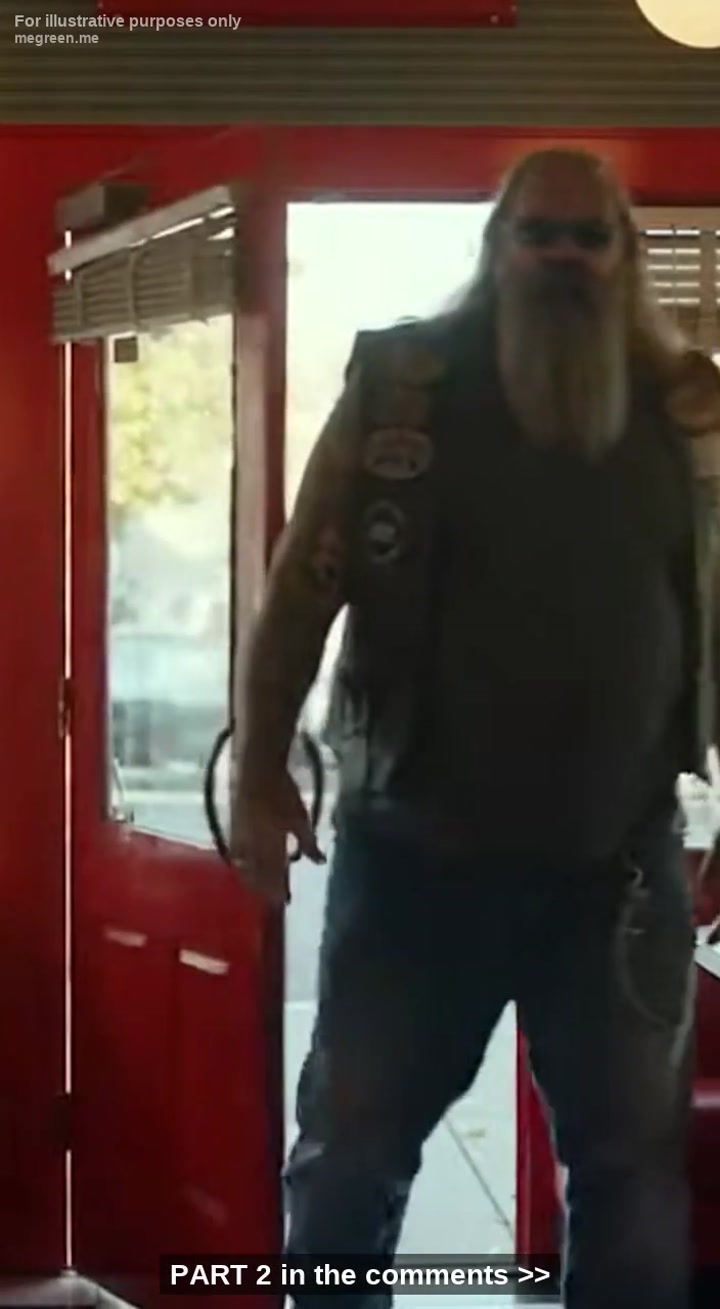 He swung a heavy boot over the seat and stood up. He was huge – at least 6’4โ, with a gray beard that hung to his chest and arms as thick as tree trunks.