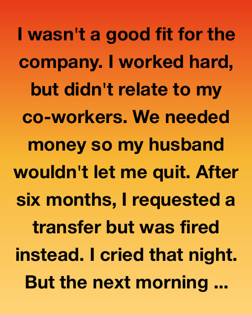 When I walked into the house, she was sitting on the couch, pale and fragile. Seeing her like that felt like déjà vu—like life had come full circle. She looked up at me and whispered, “Now I understand.”