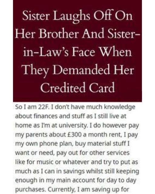 My Brother Said I โOwedโ Him My Credit CardโSo I Handed Him Something Else Instead
